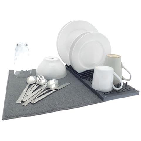Scolapiatti Cola Piatti 2in1 in Plastica con Panno in Microfibra Scola Posate