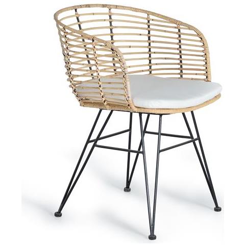 Set di 2 sedie in rattan e metallo, cuscino incluso. misure: 80 x 52 x 56cm.