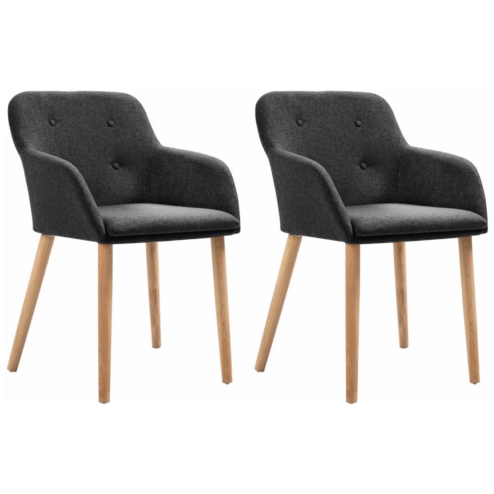 Sedie Da Pranzo 2 Pz Grigio Scuro Tessuto E Massello Di Rovere