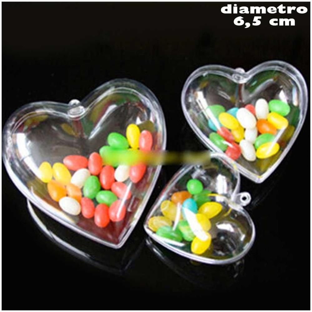 Set 3 Cuori Trasparenti Apribili da Riempire Decorazione Natale Diametro 6,5 cm