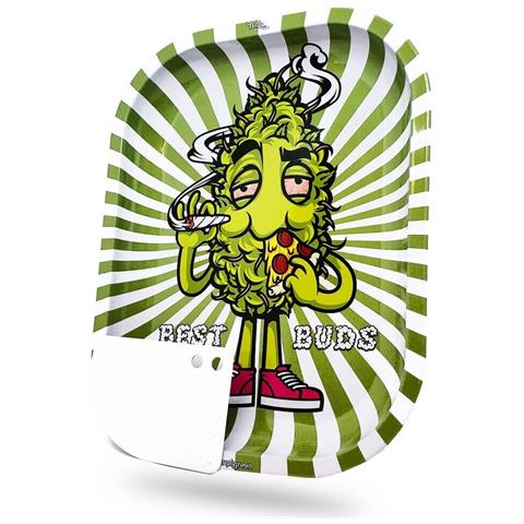 Best buds vassoio per rollare pizza mini con grinder card magnetica 14x18 cm molto maneggevole e leggero. Perfetto come supporto e per rollare. Interno completamente piatto e bordi con leggero rilievo e grinder card magnetica misure: 18x14cm.
