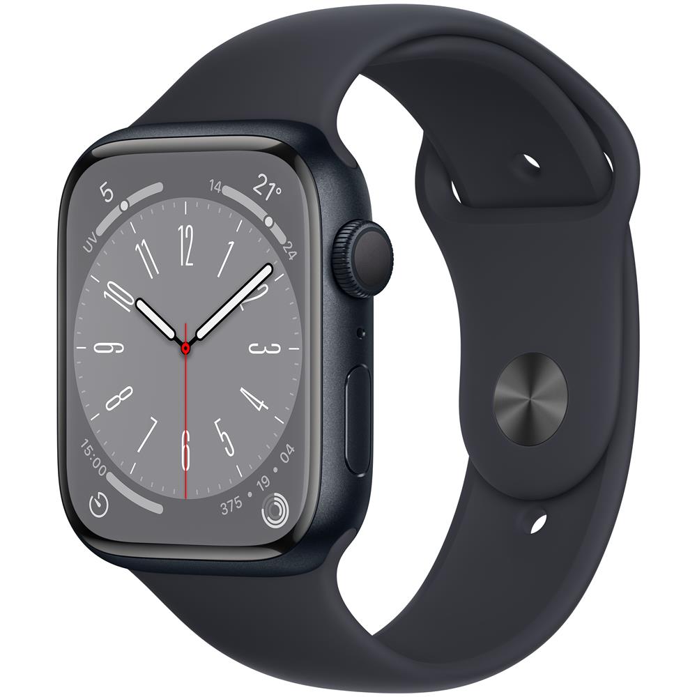 Apple Watch Series 8. Tecnologia display: OLED, Risoluzione del display: 352 x 430 Pixel, Touch screen. Memoria flash: 32 GB. Wi-Fi. GPS (satellitare). Peso: 32 g. Impermeabile fino a: 50 m, Colore cinturino: Nero. Sistema operativo incluso: watchOS 9