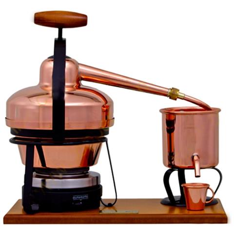 Alambicco, distillatore - premium, con piastra elettrica, 1,25l caratteristiche principali: apparecchi di distillazione compatti di qualità premium pentola in rame di alta qualità con un volume di 1,25 litri piastra elettrica con regolatore di temperatura e potenza di 500 watt elmetto in rame che funziona come una camera di vapore robusta struttura in metallo nero con manovella per fissare sald...