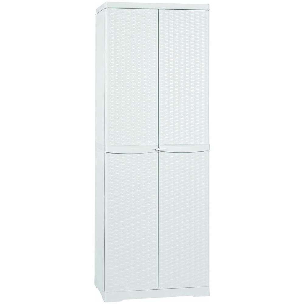 Mobile armadio da esterno line rattan bianco tutto piani 65x45x180 adatto per terrazzi, balconi, giardini.