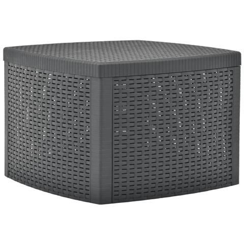 Colore: antracite. Materiale: plastica (100% polipropilene). Dimensioni complessive: 54 x 54 x 36,5 cm (l x p x a). Dimensioni interne: 52 x 52 x 35 cm (l x p x a). Con un design accattivante e piatto in rattan. Con comoda area di stoccaggio per rinfreschi. Resistente agli agenti atmosferici.