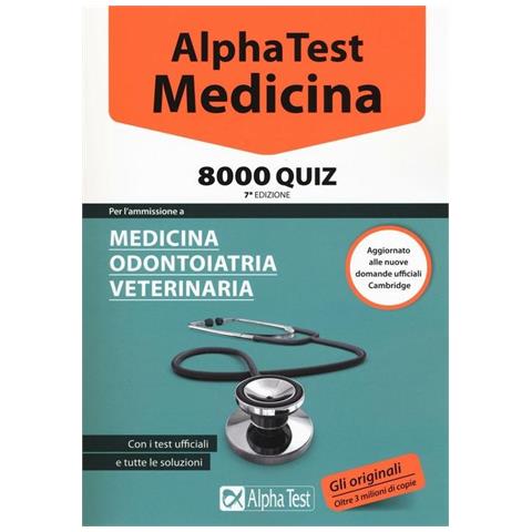 L ultima edizione di questo volume, aggiornata ai test 2017, raccoglie 8.000 domande a risposta multipla provenienti dall'archivio ufficiale delle prove di ammissione. Rispetto alla precedente edizione, il numero di domande e stato ridotto per garantire la massima corrispondenza con i quesiti ministeriali previsti nei prossimi test di Medicina, Odontoiatria e Veterinaria. Le domande, di cui ven...