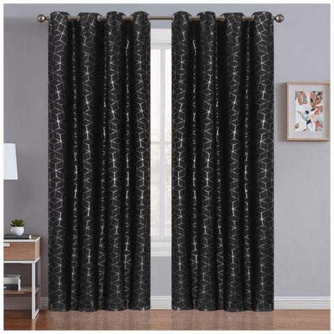 Elegante blocco della luce: queste tende bloccano efficacemente la luce solare e i dannosi raggi uv, garantendo la completa oscurità quando necessario per il sonno o la privacy. L'elegante motivo geometrico argentato aggiunge un tocco di raffinatezza a qualsiasi stanza. Versatile ed elegante: il classico colore nero e l'intricato design argento completano un'ampia gamma di stili di interni, dal...