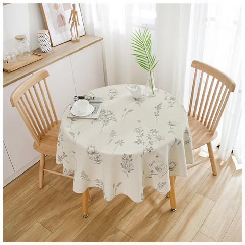 Tovaglia Con Disegno Botanico - Rotonda 150 Cm Gray