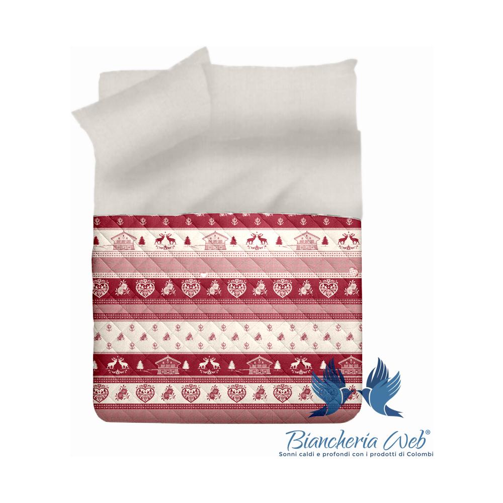 Trapunta invernale linea quadrifoglio disegno tirolo. Caratteristiche:. - soffice trapunta ideale per le fredde notti invernali. - i colori brillanti e vivaci sono molto solidi e resistenti anche a numerosi lavaggi. - prodotto made in italy rifinito nei minimi particolari in modo accurato. - certificazione oeko-tex: prodotto che ha come valore aggiunto la garanzia di essere stato analizzato per...
