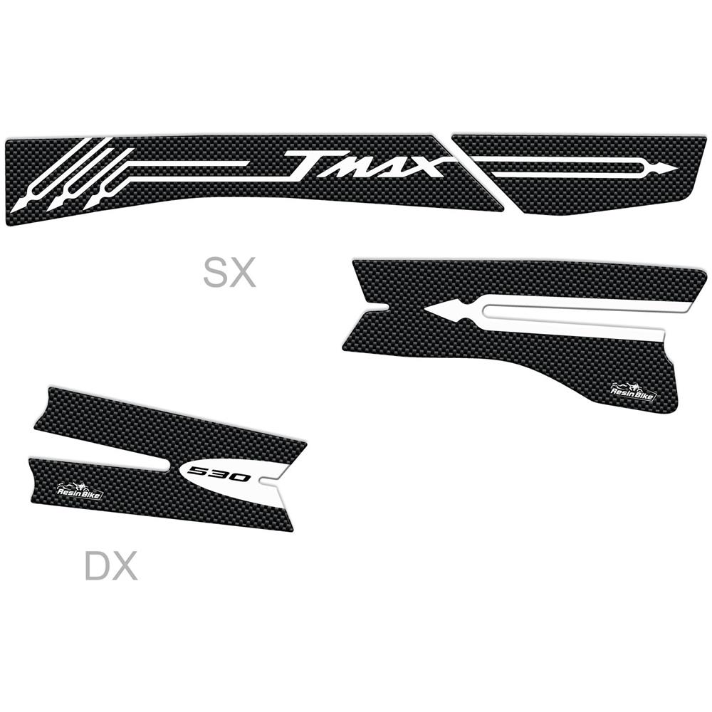 Adesivi resinati protezioni posteriori per carter, cinghia e forcelle compatibili con yamaha tmax 2012-2016. prodotto non originale. adesivi per yamaha tmax modello 2012-2016. kit di adesivi resinati compatibili con tmax 2012-2016. Adesivi per parte posteriore scooterone. adesivi tmax in versione modello 06 colorazione cabon look (effetto carbonio) e bianco. Decora e protegge le componenti del...