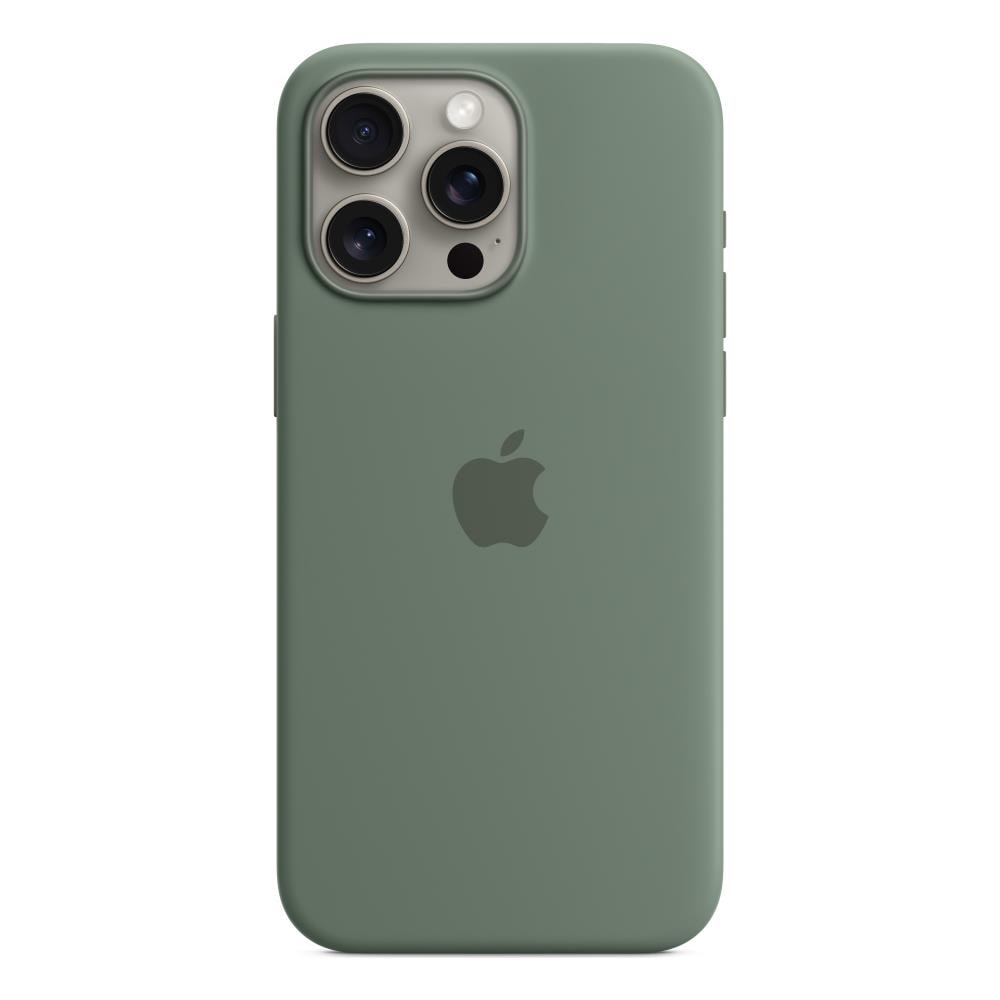 Apple Custodia MagSafe in silicone per iPhone 15 Pro Max - Cipresso. Tipologia custodia: Cover, Compatibilità marca: Apple, Compatibilità: iPhone 15 Pro Max, Capienza massima dimensioni dello schermo: 17 cm (6.7"), Colorazione superficie: Monocromatico, Colore del prodotto: Verde