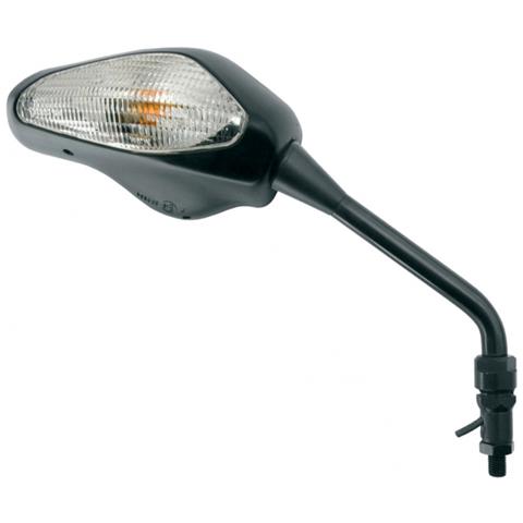 Specchietto retrovisore non originale ma perfettamente intercambiabile con freccia integrata per Ducati Multistrada 1000/1100. Lo specchio interno è fisso e non regolabile.