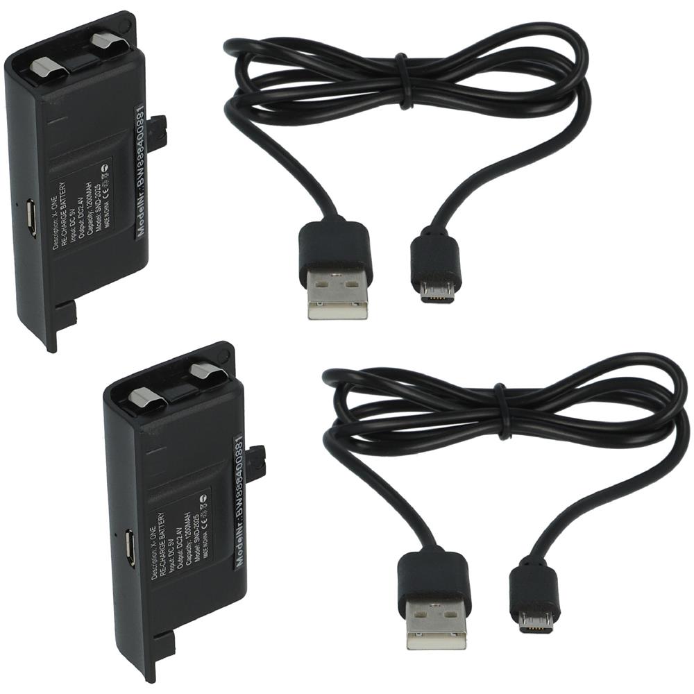 2x Batteria Compatibile Con Microsoft Xbox One X Wireless Controller (1200mah, Nimh), Nero - Incl. Copertura + Cavo Di Ricarica Usb