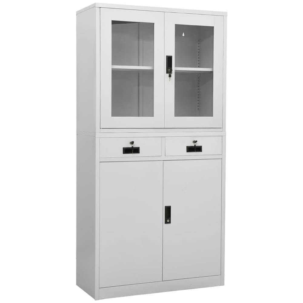 Armadio Per Ufficio Grigio Chiaro 90x40x180 Cm Acciaio E Vetro