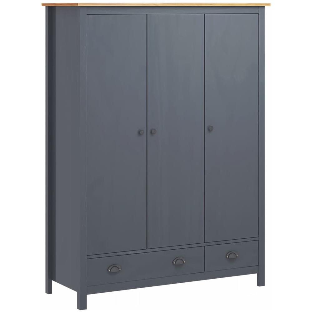 Armadio a 3 Ante Hill Grigio 127x50x170 cm in Legno di Pino