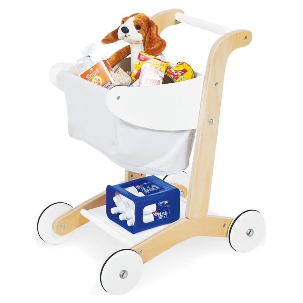 Colore: Naturale. Materiale: Legno massello. Dimensioni: 44 x 32 x 51 cm (L x P x A). Con un cestino in tessuto e scomparto inferiore in 100% cotone. Altezza impugnatura: 50 cm. 4 Ruote in legno gommate. Età consigliata: Da 3 a 6 anni. Piccoli pezzi. Pericolo di soffocamento!. Può essere pulito con una pelle scamosciata asciutta o un panno di cotone. AVVERTENZA: Non adatto per i bambini al di s...