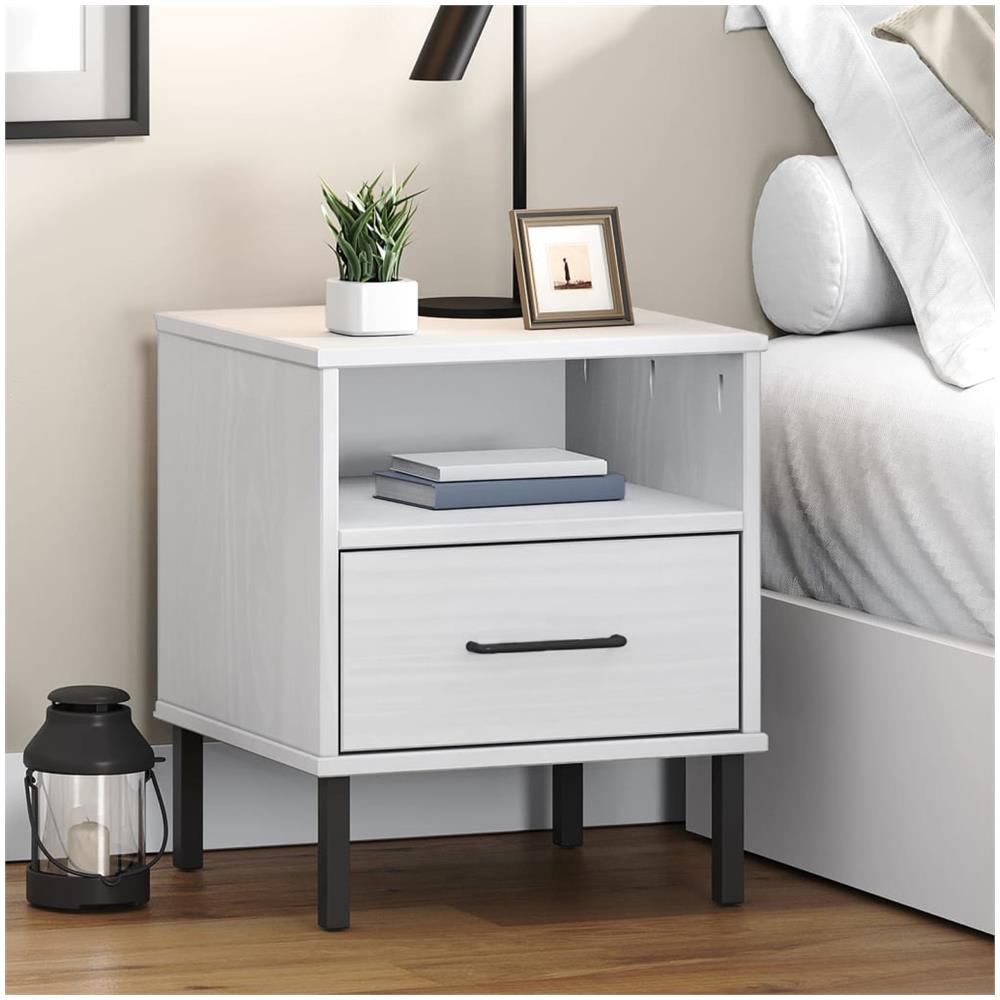 Comodino Con Gambe In Metallo Bianco Legno Massello Pino Oslo