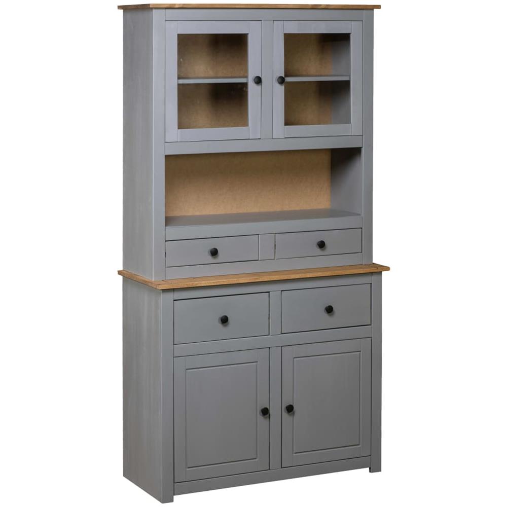 Credenza Grigia 93x40,5x180 cm in Legno Massello di Pino Panama
