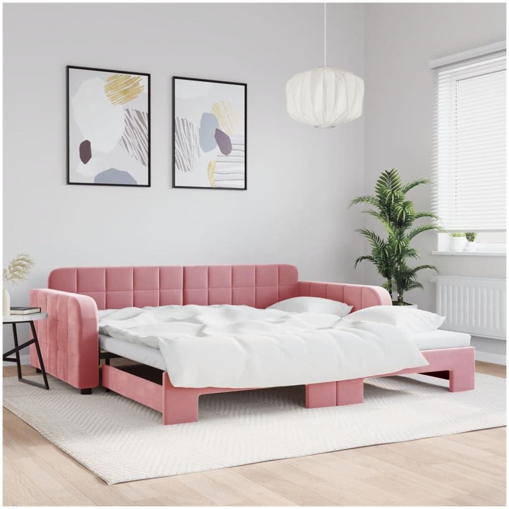 Divano Letto con Letto Estraibile Rosa 100x200 cm in Velluto
