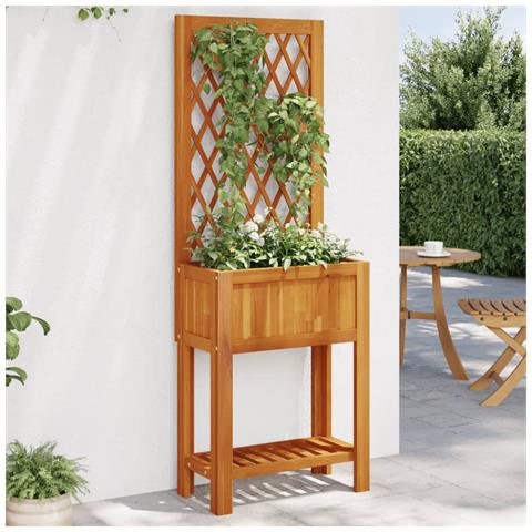 Fioriera Con Traliccio E Ripiano 55x29,5x152 Cm In Legno Acacia