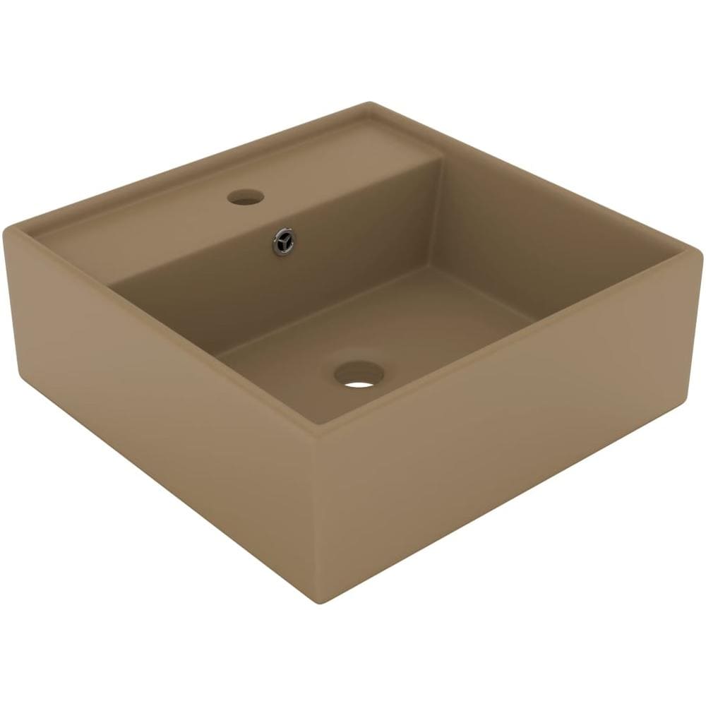 Lavabo Troppopieno Quadrato Crema Opaco 41x41cm Ceramica