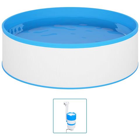 Piscina fuori terra: Colore: Bianco e blu. Materiale: Acciaio, PVC. Dimensioni: 350 x 90 cm (Diametro x A). Spessore parete in acciaio: 0,3 mm. Spessore del rivestimento in PVC: 0,3 mm. Capacità: 7200 L (1900 galloni). Facile da montare e smontare. Skimmer sospeso con pompa. Colore: Bianco e blu.