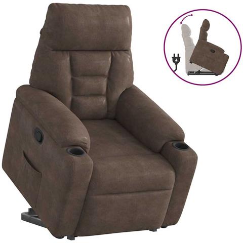 Poltrona Alzapersona Reclinabile Marrone in Tessuto Microfibra