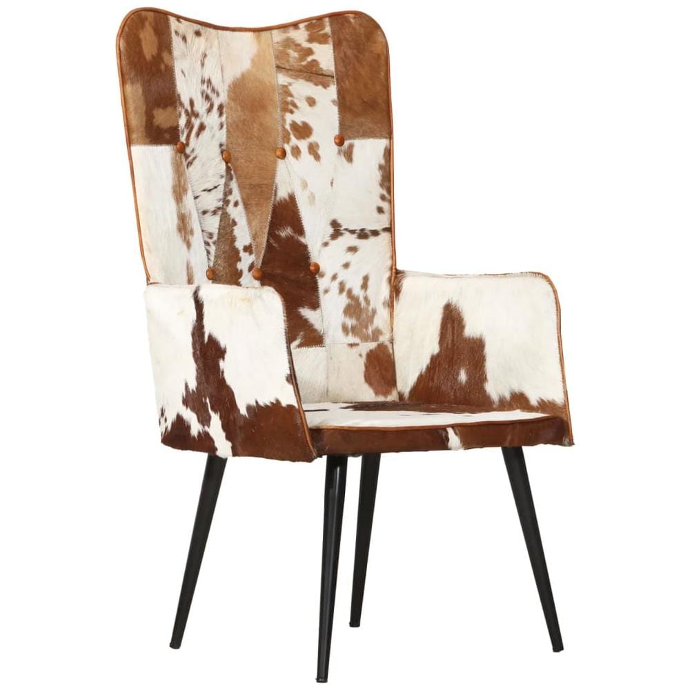 Sedia A Schienale Alto Pelosa In Vera Pelle Marrone E Bianca