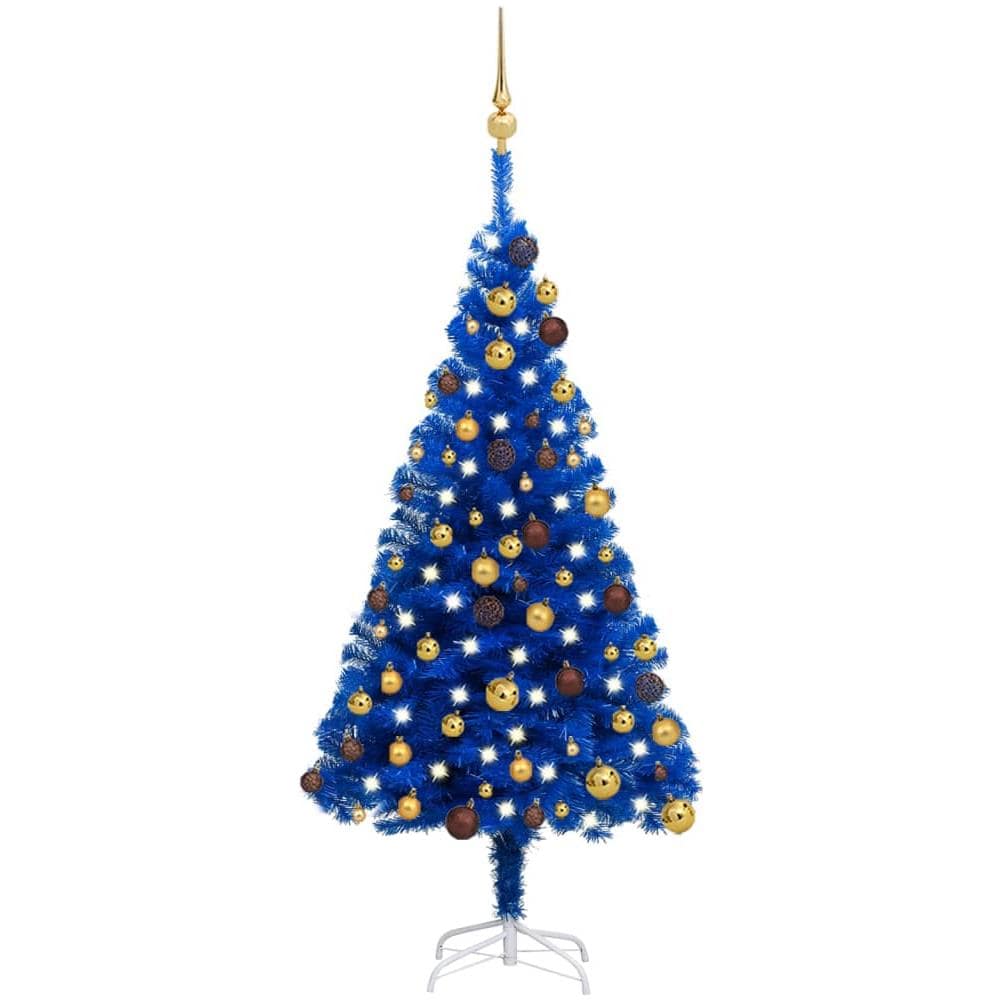 Set Albero Natale Artificiale Con Led E Palline Blu 120 Cm Pvc