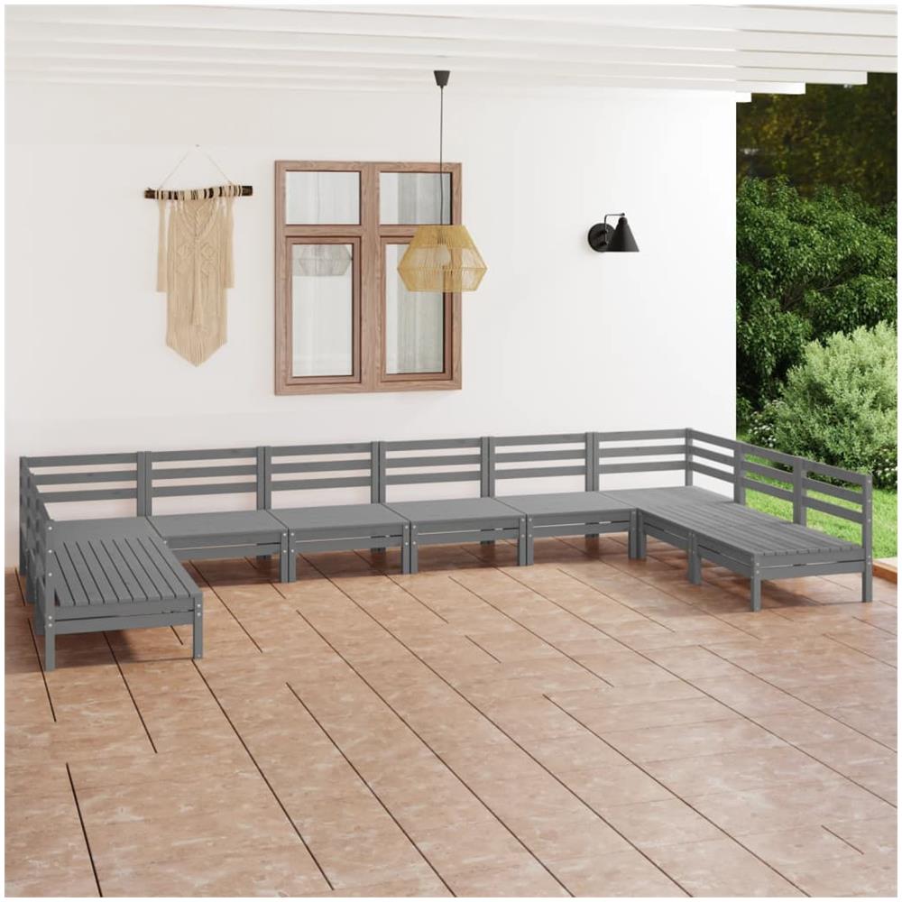 Set Divani Da Giardino 10 Pz Grigio In Legno Massello Di Pino