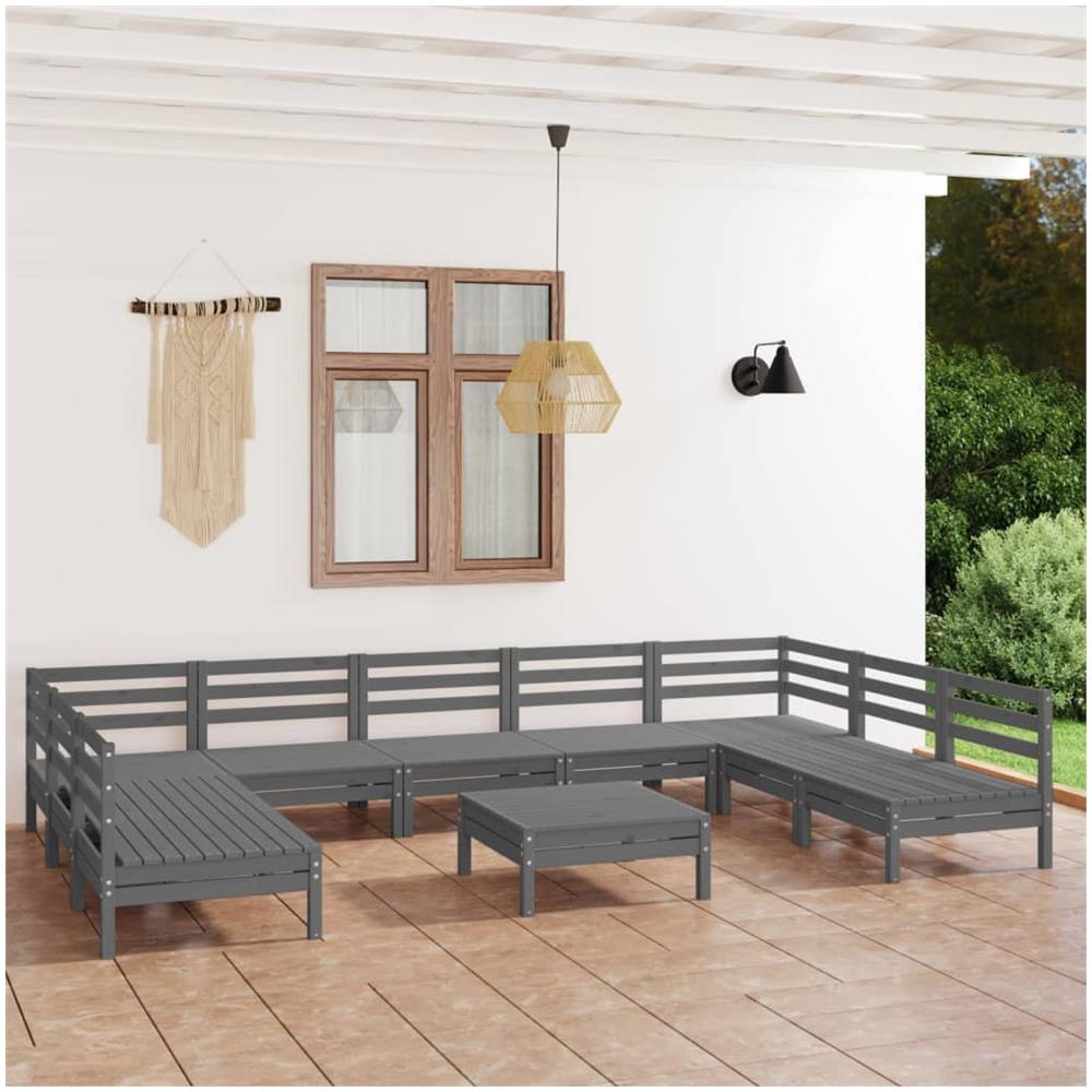 Set Divani Da Giardino 10 Pz Grigio In Legno Massello Di Pino