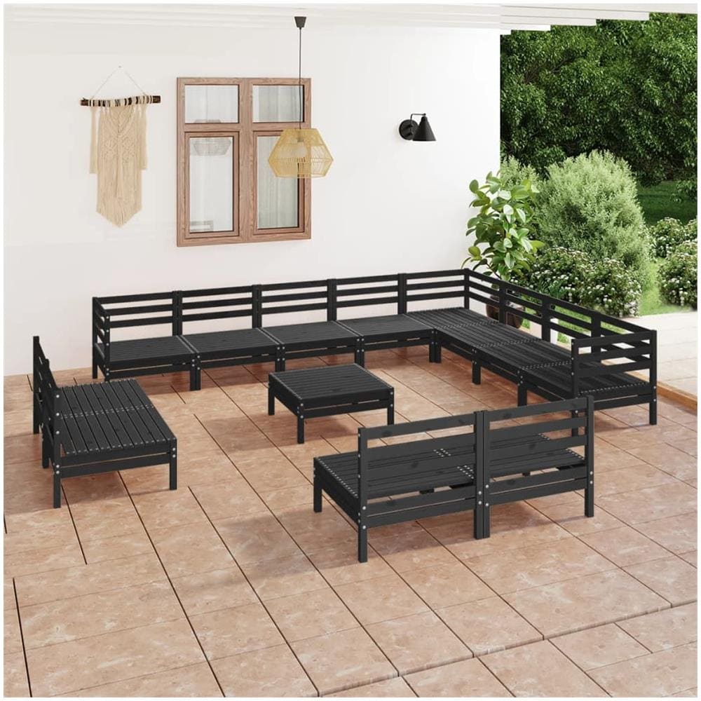 Set Divani Da Giardino 13 Pz In Legno Massello Di Pino Nero