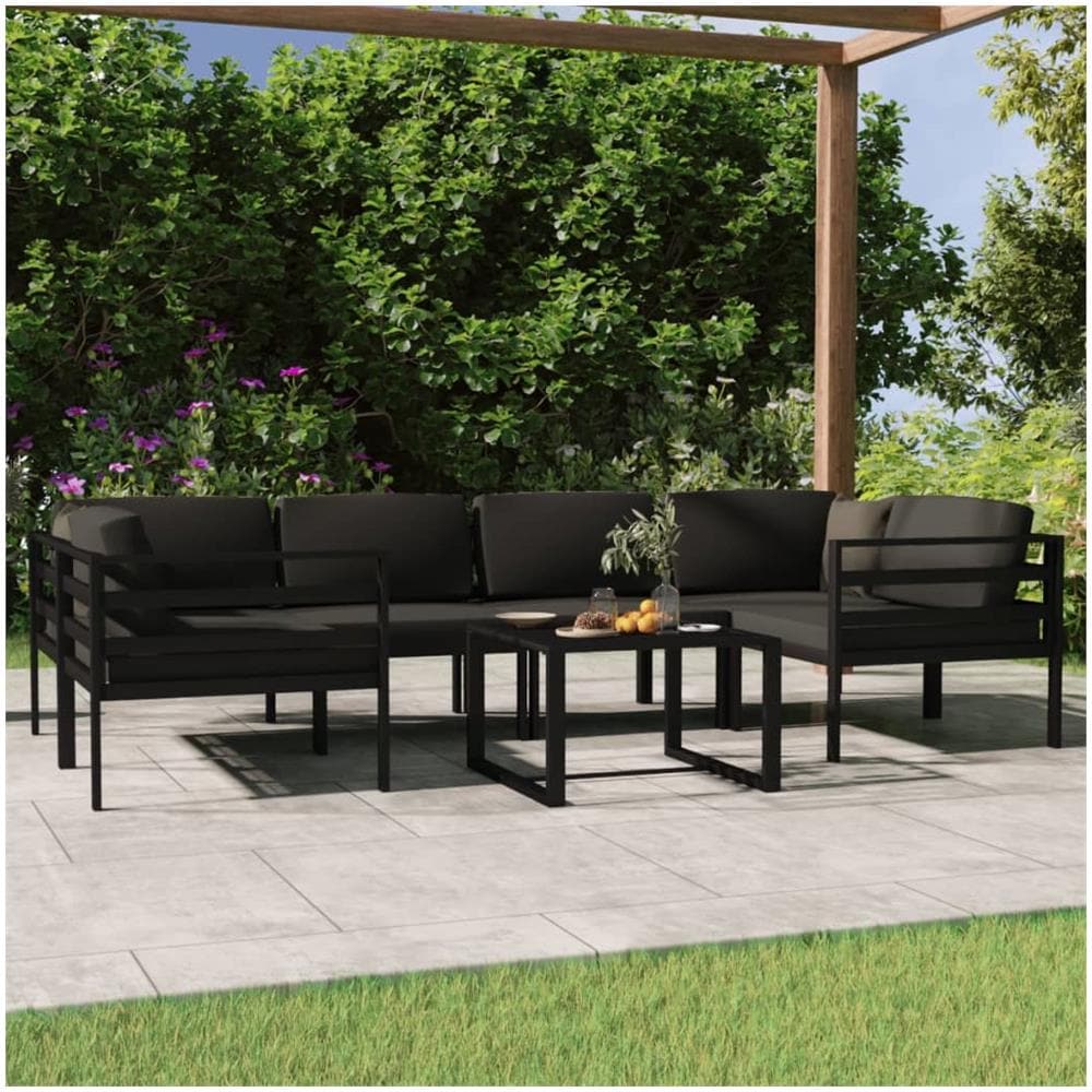 Set Divani Da Giardino 7 Pz Con Cuscini In Alluminio Antracite