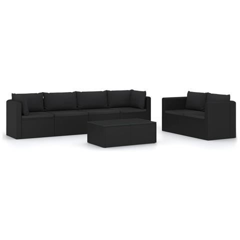Set Divani Da Giardino 7 Pz Con Cuscini In Polyrattan Nero