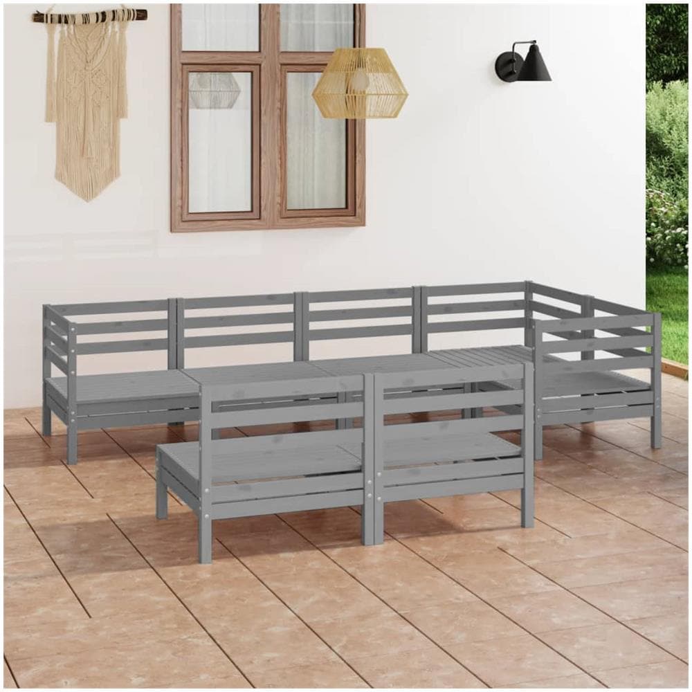Set Divani Da Giardino 7 Pz In Legno Massello Di Pino Grigio