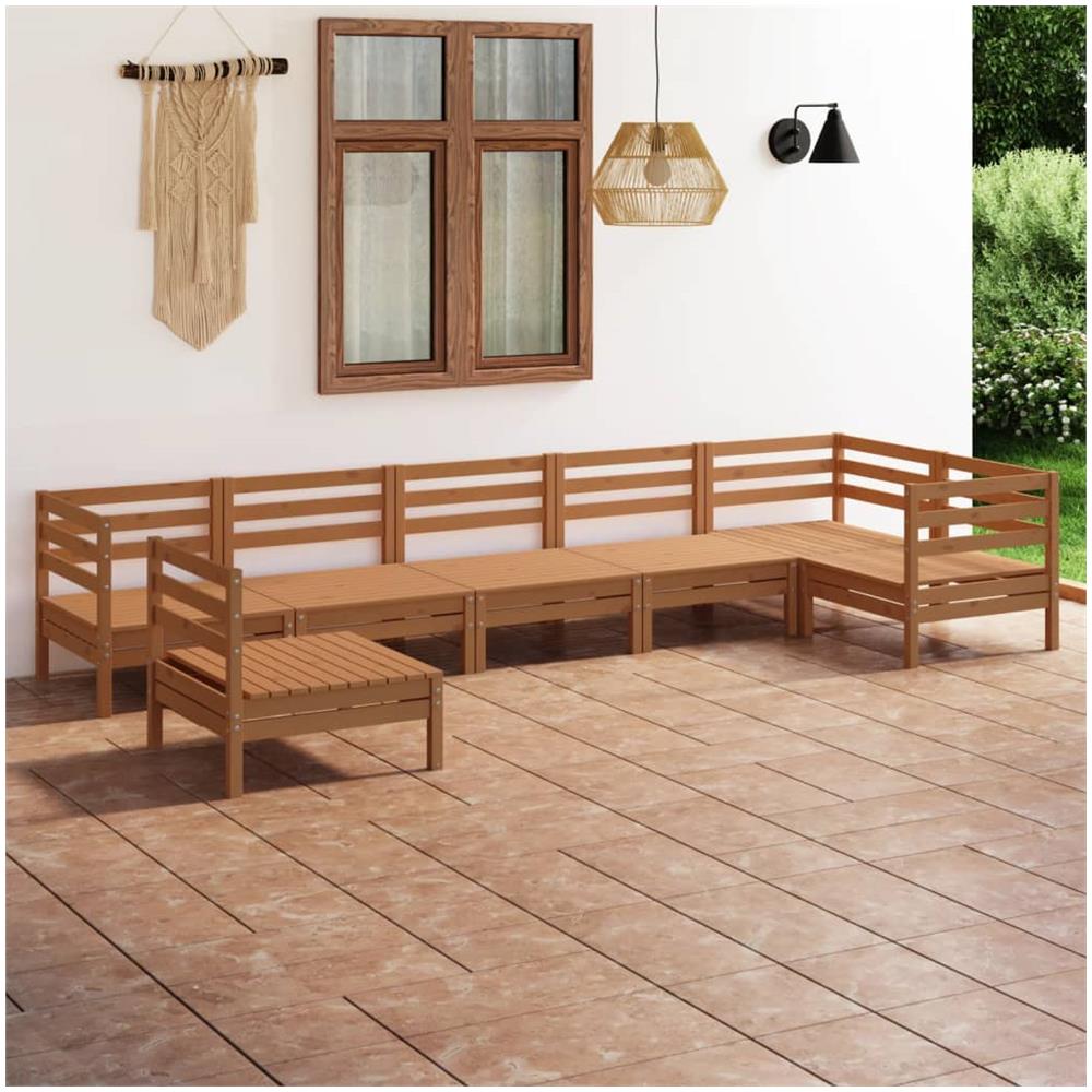 Set Divani Da Giardino 7 Pz In Legno Massello Di Pino Miele