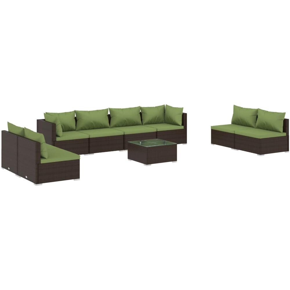 Set Divani Da Giardino 9 Pz Con Cuscini In Polyrattan Marrone