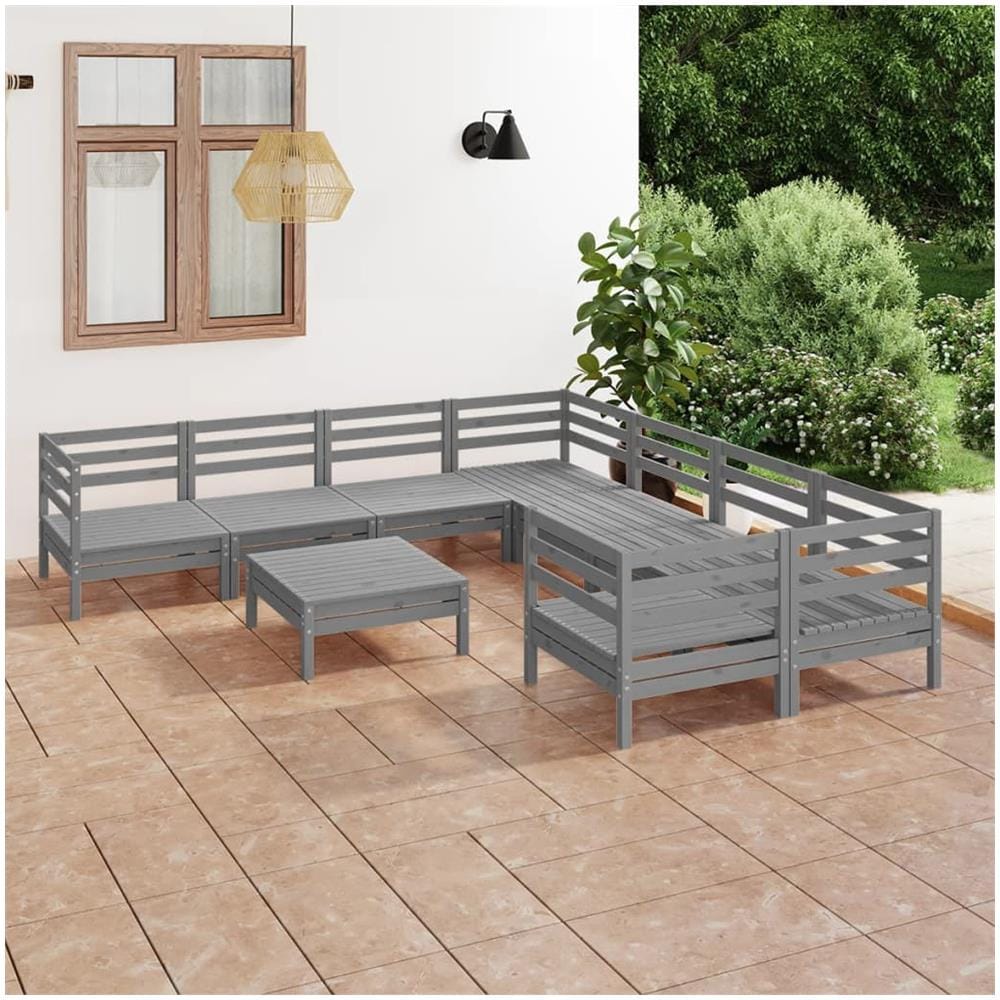 Set Divani Da Giardino 9 Pz Grigio In Legno Massello Di Pino