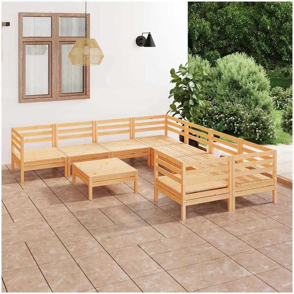 Set Salotto da Giardino 9 pz in Legno Massello di Pino