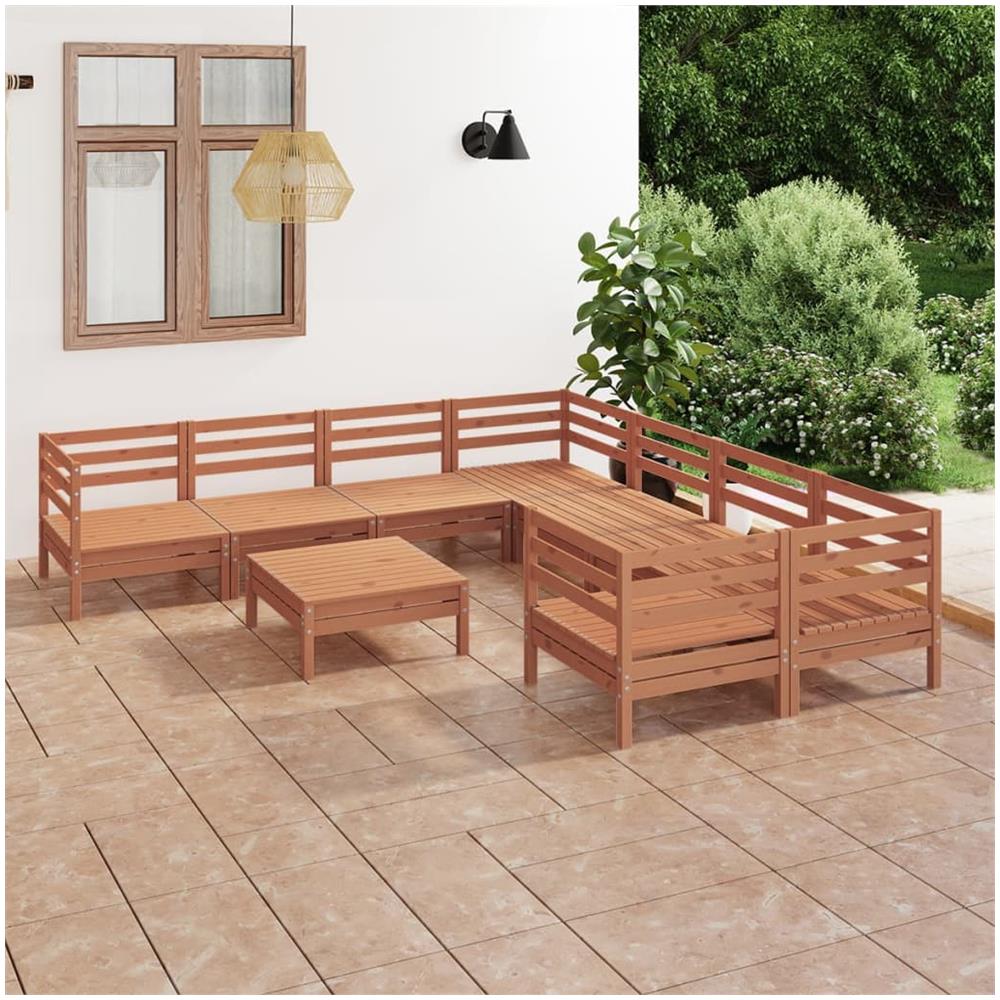Set Divani Da Giardino 9 Pz Miele In Legno Massello Di Pino
