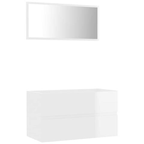 Set Mobili da Bagno 2 pz Bianco Lucido in Legno Multistrato