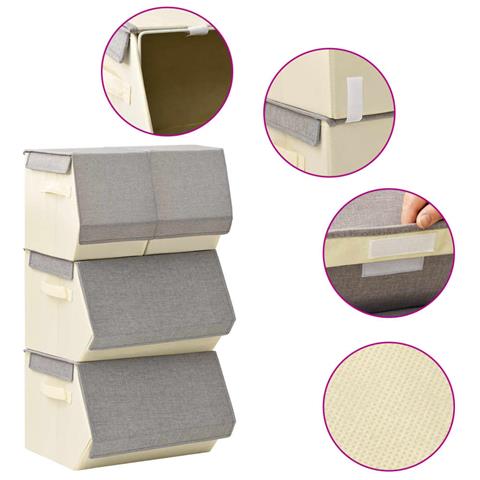 Scatole Portaoggetti Impilabili Set 4pz Tessuto Grigio e Crema