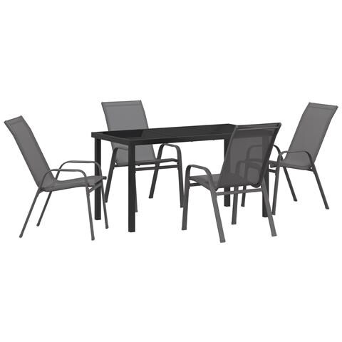 Set Tavolo da Giardino 5 Pezzi Grigio Textilene e Acciaio, Tavolo da Giardino Nero 140x80x73 cm Vetro Temperato