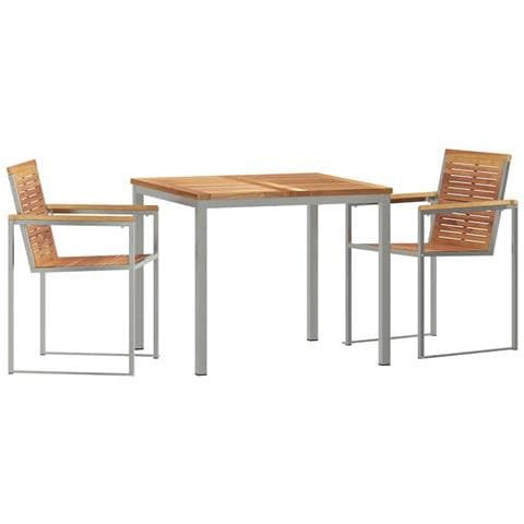 Set da Pranzo per Giardino in Legno Massello di Teak da 3 Pezzi, Tavolo da Pranzo da Esterno 90x90x74.5 cm in Legno Massello di Teak