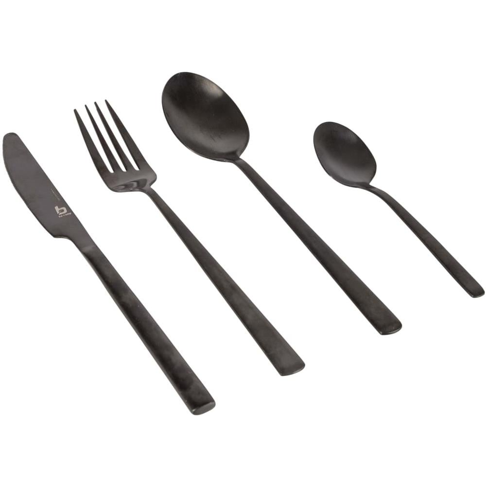 Colore: Nero. Materiale: Acciaio inossidabile. Lavabili in lavastoviglie. Adatto per 4 persone. Gamma Industrial della Bo Camp. La consegna include: 4 Coltelli da tavola. 4 Forchette da tavola. 4 Cucchiai. 4 Cucchiaini medi.