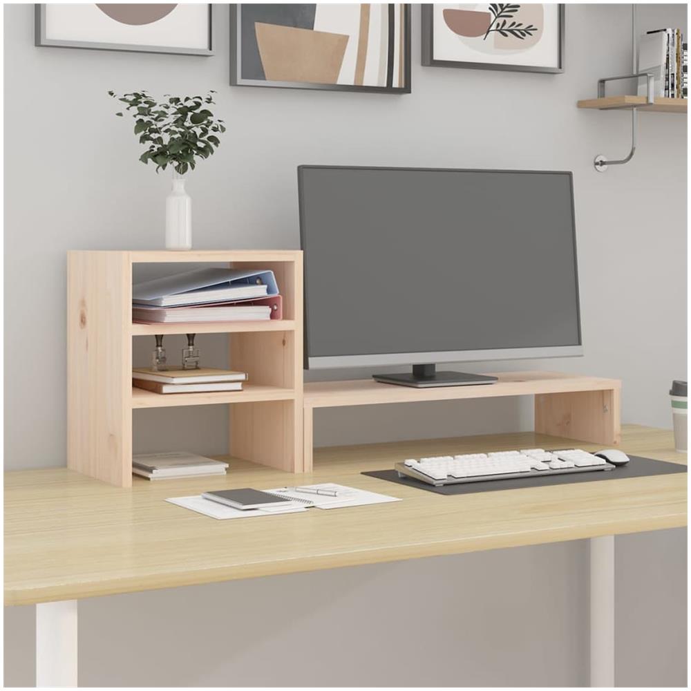 Supporto Per Monitor 81x20x30 Cm In Legno Massello Di Pino