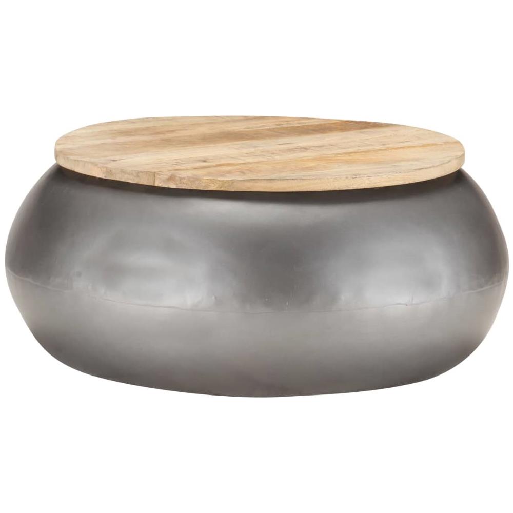 Tavolino Da Caff Grigio 68x68x30 Cm In Legno Massello Di Mango