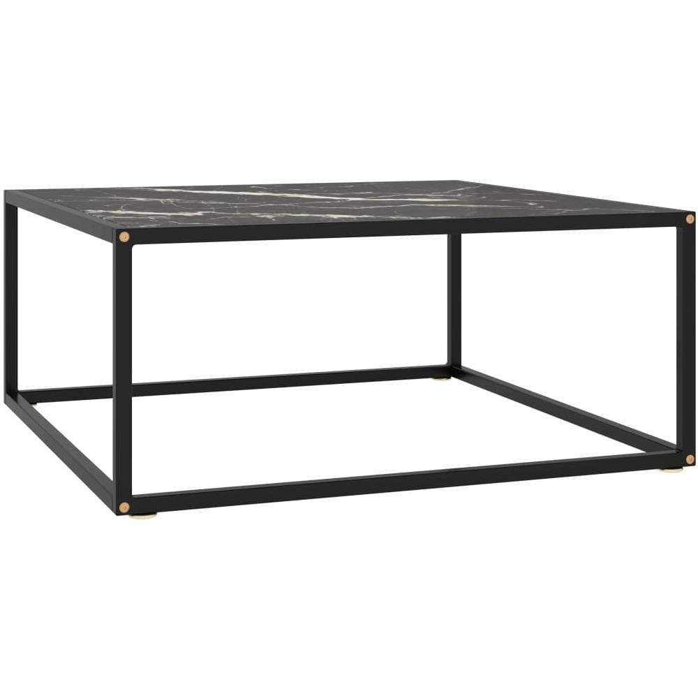 Tavolino Da T Nero Con Vetro Marmo Nero 80x80x35 Cm