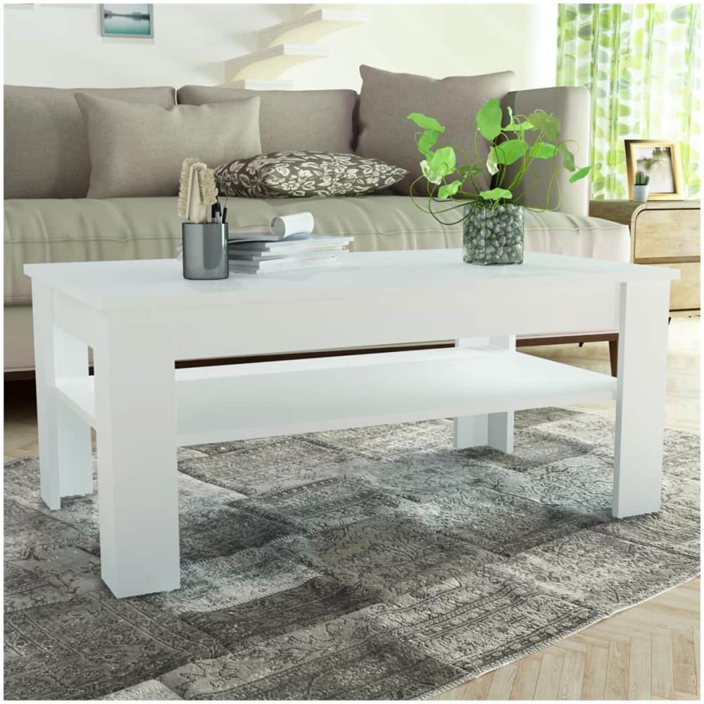 Tavolino da Salotto in Legno Multistrato 110x65x48 cm Bianco