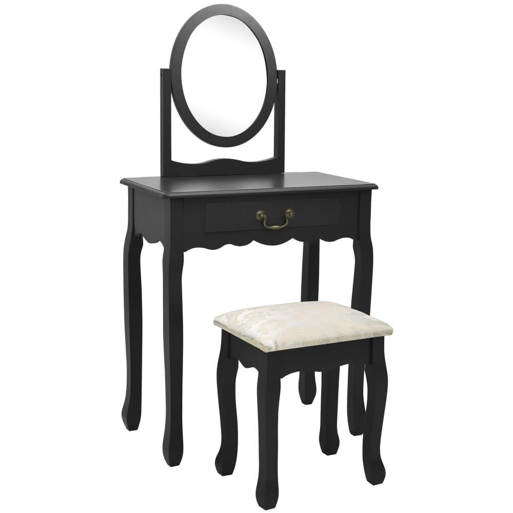 Tavolo Da Trucco Con Sgabello Nero 65x36x128 Cm Paulownia E Mdf